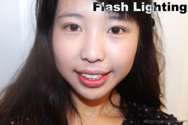 Here are some pictures of me wearing the foundation (no concealer, no powder) in different lightings. There are no edits made to the picture (except for the text) or filters added to any of the pictures.
