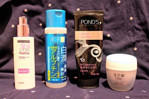 The product on the very left is from Maybelline Shanghai. It’s called “White Refine” and is basically this amazing whitening lotion. I love the packaging and the smell, and it works wonders!