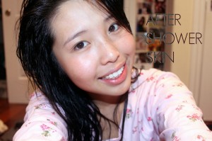 Here is my face after I shower. I’ve been really busy, so I haven’t been sticking much to my routine at all. These days I’ve basically just been removing my makeup, showering, and then going straight to bed. During the day, I haven’t had time to wear any face makeup either, so I’ve gotten a lot tanner from all the lack of SPF. (I also went to camp last weekend and tanned a few noticeable shades from that. More on camp in future posts!)