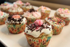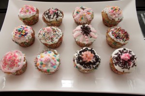 Just lay out some blank cupcakes, offer different colors of icing and frosting, and an assortment of sprinkles, and just watch everyone go crazy. You can get soo creative with this stuff. I was kind of on a tight budget, but next time I’m definitely buying some colorful candy and fruit to use as decorations too!