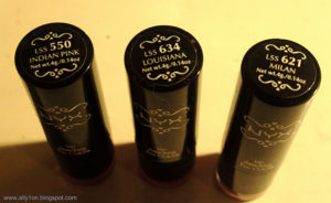 three lipsticks in Louisiana, Indian Pink and Milan,